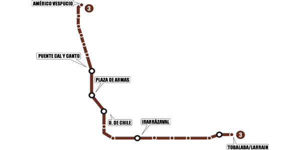 El inicio de las obras de la futura Línea 3 en el centro de Santiago considera la construcción de las nuevas estaciones Universidad de Chile y Plaza de Armas, las que complementarán a las ya existentes en las Líneas 1 y 5, respectivamente, sirviendo como puntos de combinación para los pasajeros del tren subterráneo.