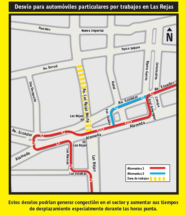 Por ello, a partir de las 15.30 horas se cerrará la intersección de Ecuador con Las Rejas Norte, durante un periodo de 60 días.