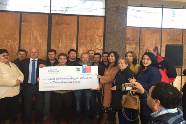 Ministra Paola Tapia entrega cheque de subsidio a dueños de taxicolectivos para su renovación en la Región del Biobío Ministra Paola Tapia entrega cheque de subsidio a dueños de microbuses para su renovación en la Región del Biobío