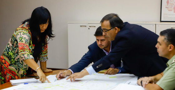 Autoridades de los ministerios de Transportes y Telecomunicaciones y Obras Públicas, Carabineros de Chile y la delegación presidencial de la…