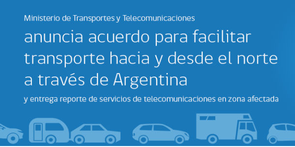 Anunciamos acuerdo para facilitar transporte hacia y desde el norte a través de Argentina y entregamos reporte de servicios de telecomunicaciones en zona afectada