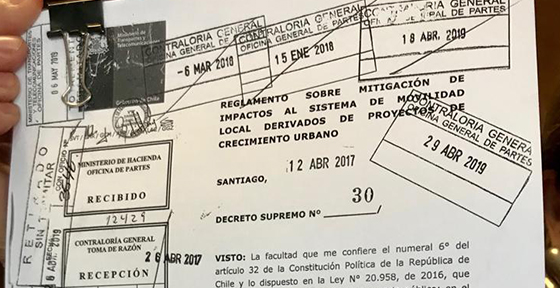 La ministra de Transportes y Telecomunicaciones, Gloria Hutt, valoró la toma de razón por parte de la Contraloría General de la República del Reglamento sobre Mitigación de Impactos al Sistema de Movilidad Local (IMIV) Derivados de Proyectos de Crecimiento Urbano, que es parte de la Ley 20.958 de Aportes al Espacio Público.