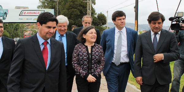 El Ministro de Transportes y Telecomunicaciones, Andrés Gómez-Lobo, la ministra de Vivienda y Urbanismo, Paulina Saball, y el Intendente regional, Ricardo Bravo, firmaron hoy el convenio para la ejecución del proyecto de conservación de la Avenida España, cuyo objetivo es mejorar las condiciones de circulación de la principal vía que conecta Valparaíso con Viña del Mar.