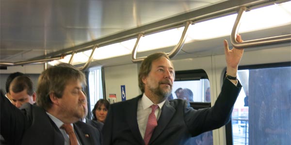 En un recorrido entre las estaciones Puerto y Hospital del Metro Valparaíso, el ministro de Transportes y Telecomunicaciones, Pedro Pablo Errázuriz; su par de Minería, Hernán de Solminihac; el presidente ejecutivo de Codelco, Thomas Keller, el presidente del Directorio Metro Valparaíso, José Luis Domínguez, y el vicepresidente Alstom Cono Sur, Julio Friedmann, inauguraron la operación del primer tren del mundo con cobre antimicrobiano en todos sus pasamanos y manillas.