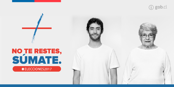 En la última elección municipal, la participación electoral alcanzó su cifra más baja de la historia desde el retorno a la democracia. La campaña “No te restes, súmate” busca cambiar esta realidad. Participa de estas elecciones presidenciales y parlamentarias el próximo 19 de noviembre y elige el país que quieres.