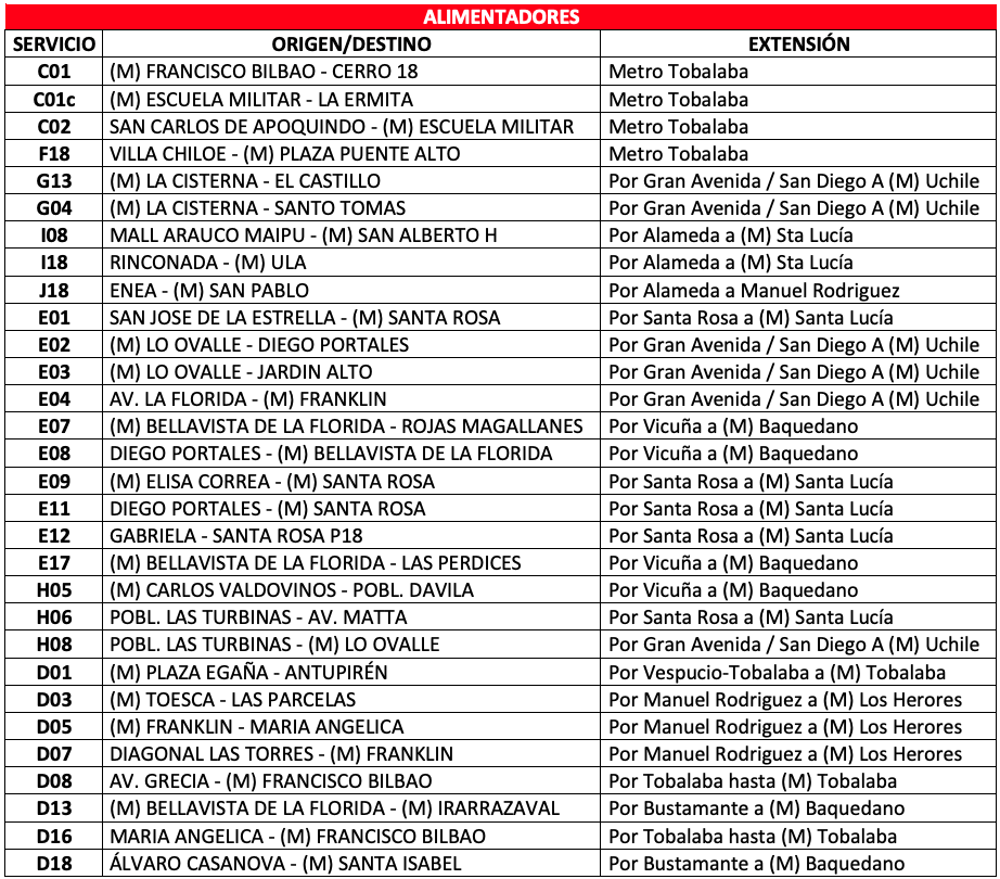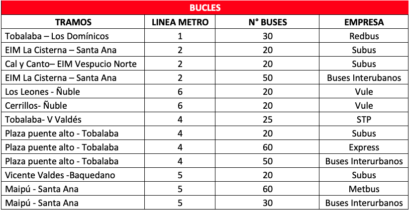 - Transber (Folios 500.001 y 500.032), reforzará la operación por Av. Gran Avenida, y optimizará la operación retornando en San Diego con Tarapacá, Santiago.