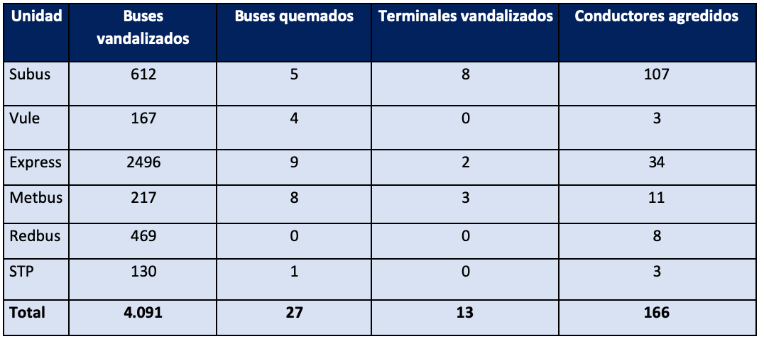 Hasta las 18 horas del lunes 11 de noviembre, los daños reportados por los operadores desde el 18 de octubre eran los siguientes: