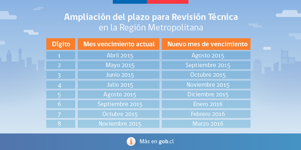 Al respecto, el ministro de Transportes y Telecomunicaciones, Andrés Gómez-Lobo, formuló un llamado a los automovilistas a no esperar hasta el último mes del nuevo plazo para efectuar el procedimiento y recomendó solicitar hora a través de los sistemas de reserva de vía telefónica o internet, de manera de facilitar el proceso.