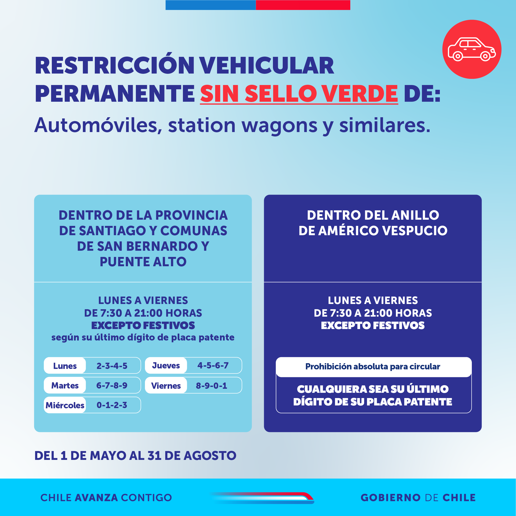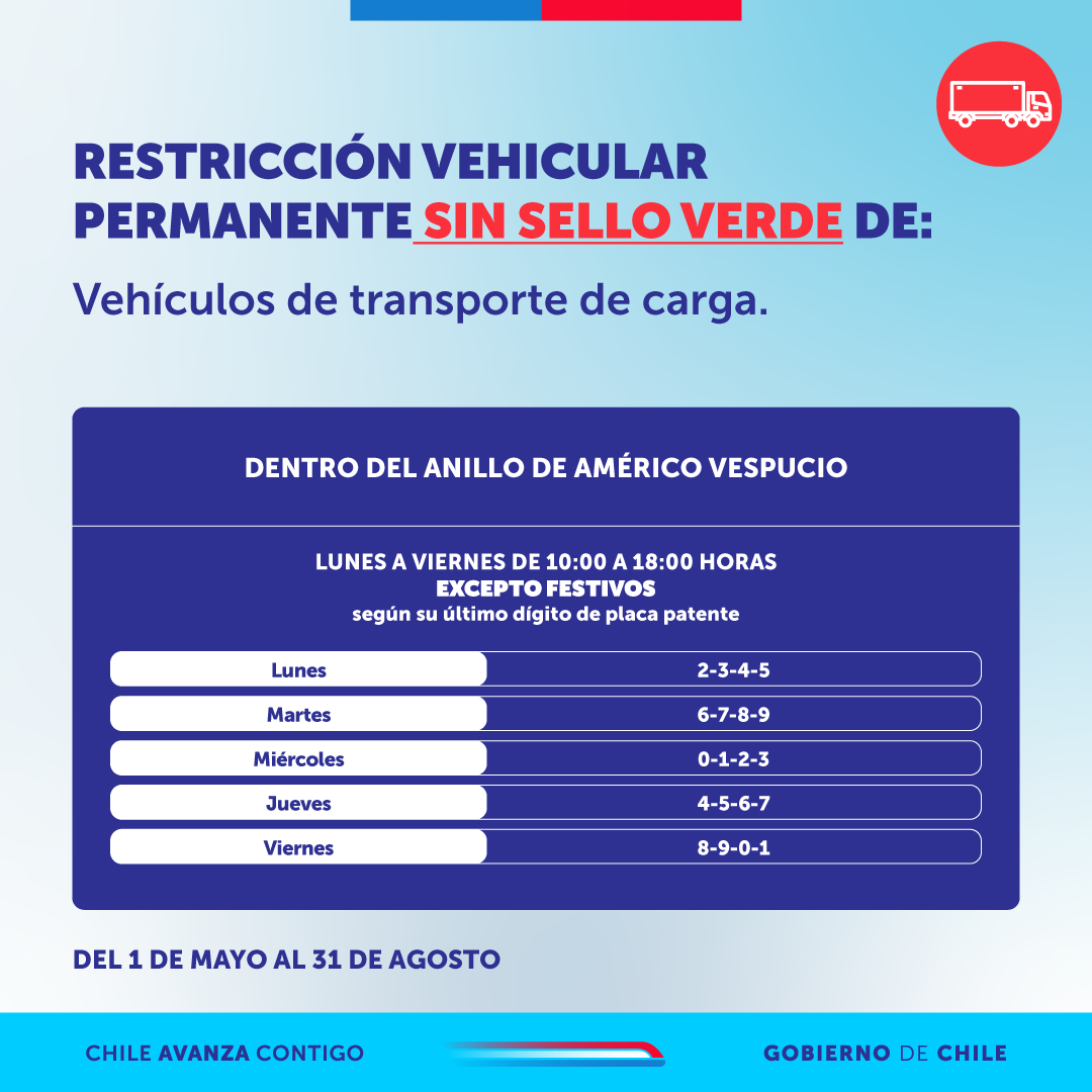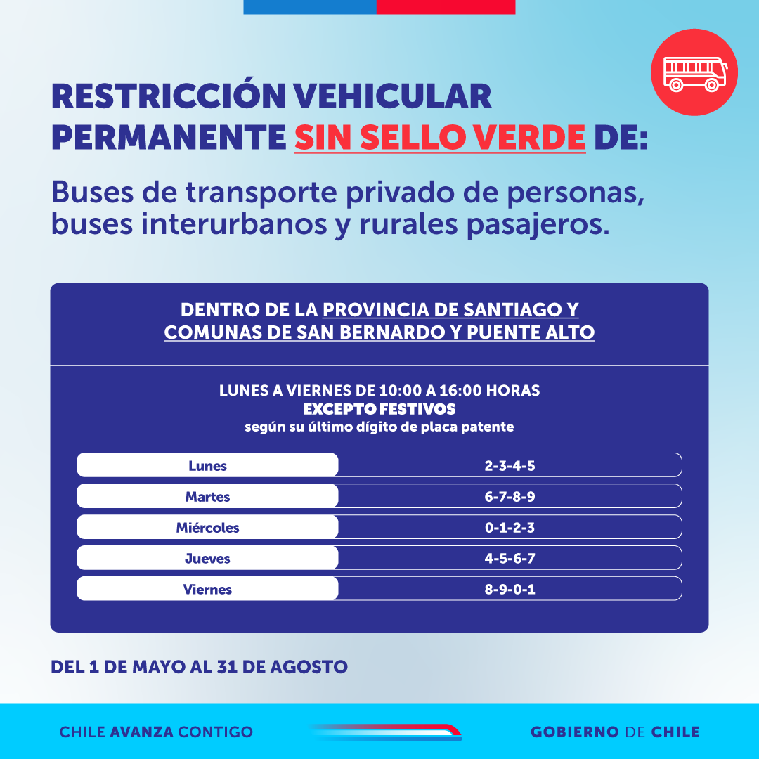 Invitamos a las personas a informarse y en caso de tener restricción, a optar por el transporte público como RED Movilidad, Metro de Santiago y Tren Alameda-Nos.
