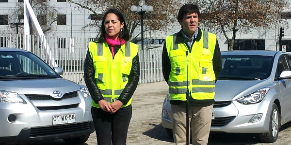 La jefa del Programa de Fiscalización del Ministerio de Transportes y Telecomunicaciones, Paula Flores, junto al Gobernador provincial, Pedro Bahamondez,…