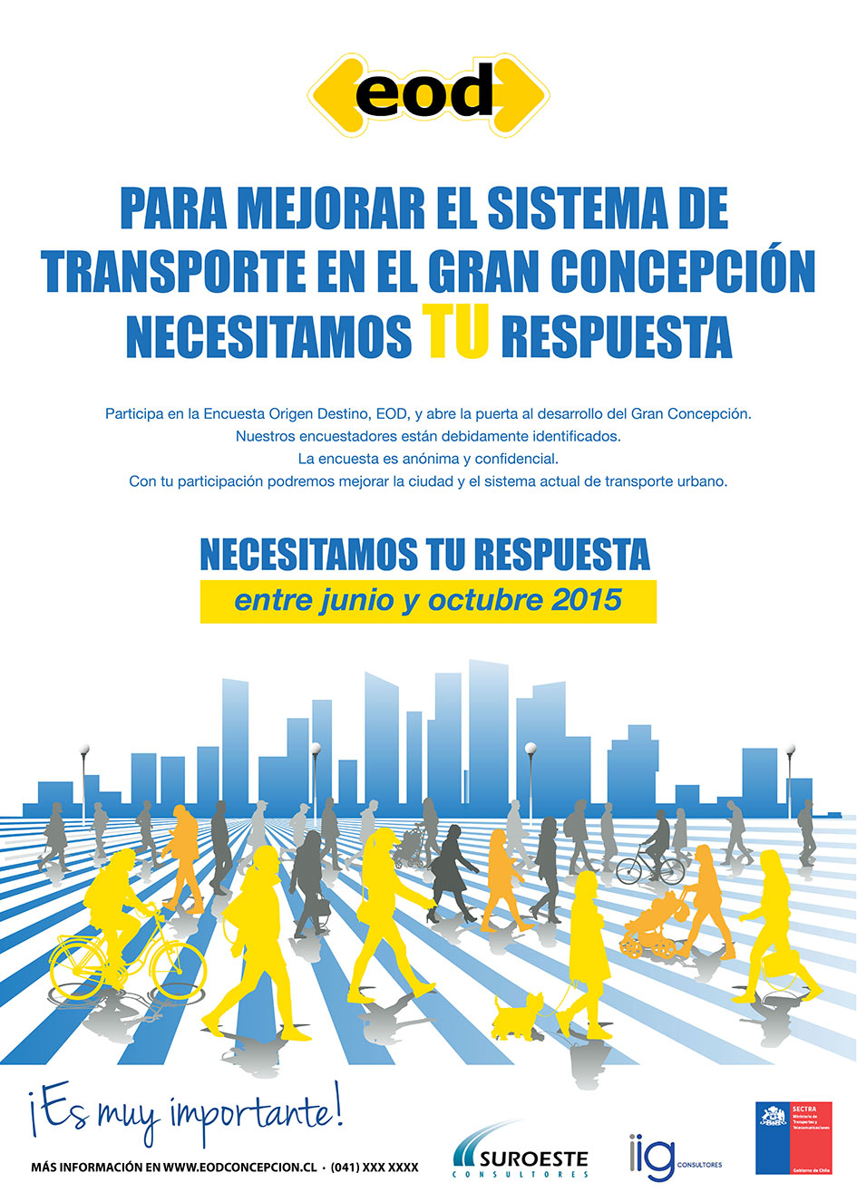Conocer exactamente cómo se movilizan los habitantes del Gran Concepción, en qué modos de transporte, desde dónde hasta dónde, con qué propósitos y con qué tiempos de viaje, es el objetivo central de la Encuesta Origen Destino de Viajes 2015, que se comenzará a aplicar desde el día lunes 15 de junio.