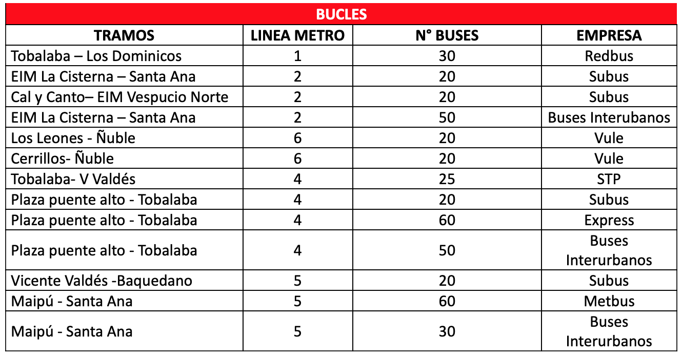 – Buses Larapinta iniciará su operación (según las condiciones de funcionamiento) a las 4:30 am. Esta empresa implementará dos itinerarios: hasta Alameda/Manuel Rodríguez o Metro Santa Ana, para luego retornar a Lampa.
