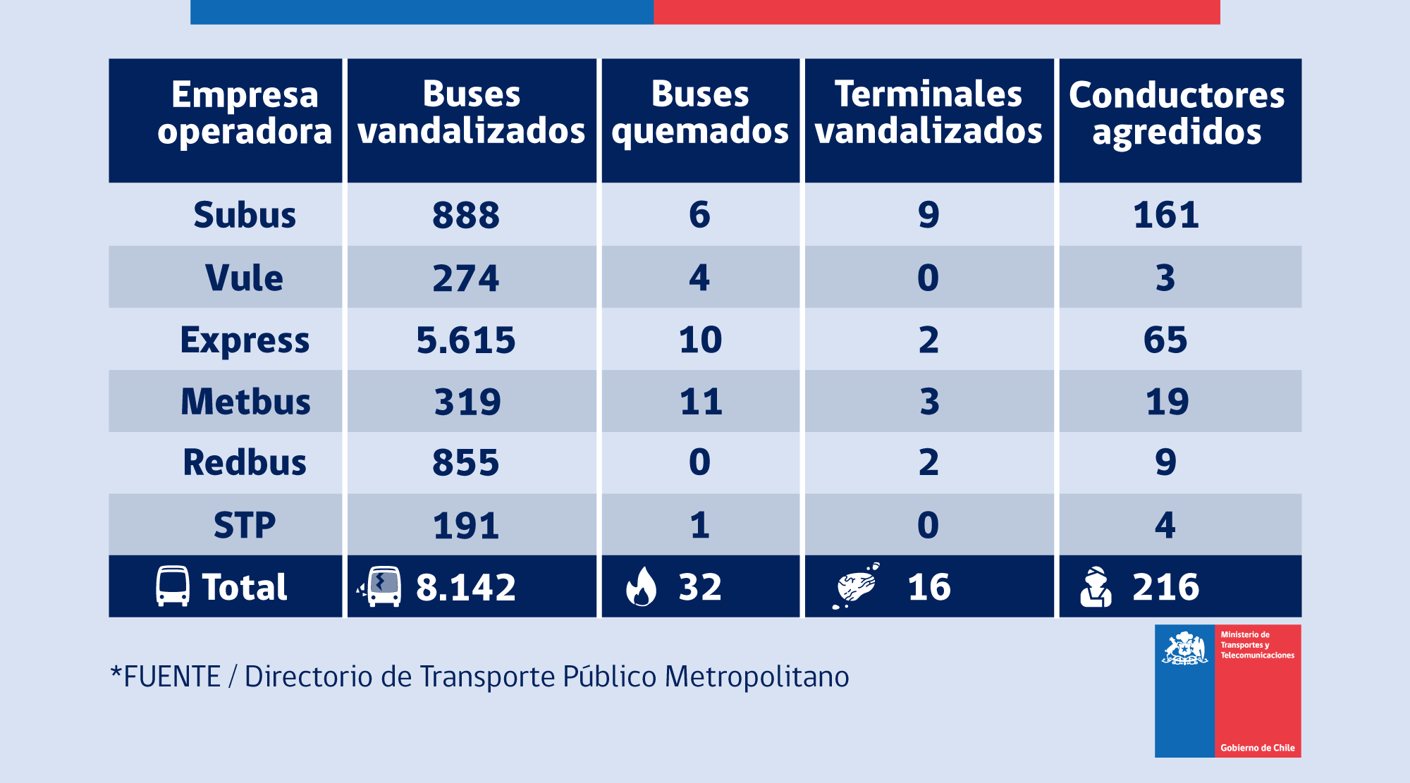 El nivel de vandalización puede ir desde rayado hasta rompimientos de ventas y puertas por apedreo. No se registran los secuestros que en su mayoría son recuperados, pero en otros casos terminan en vandalismo o riesgo de quema del bus.